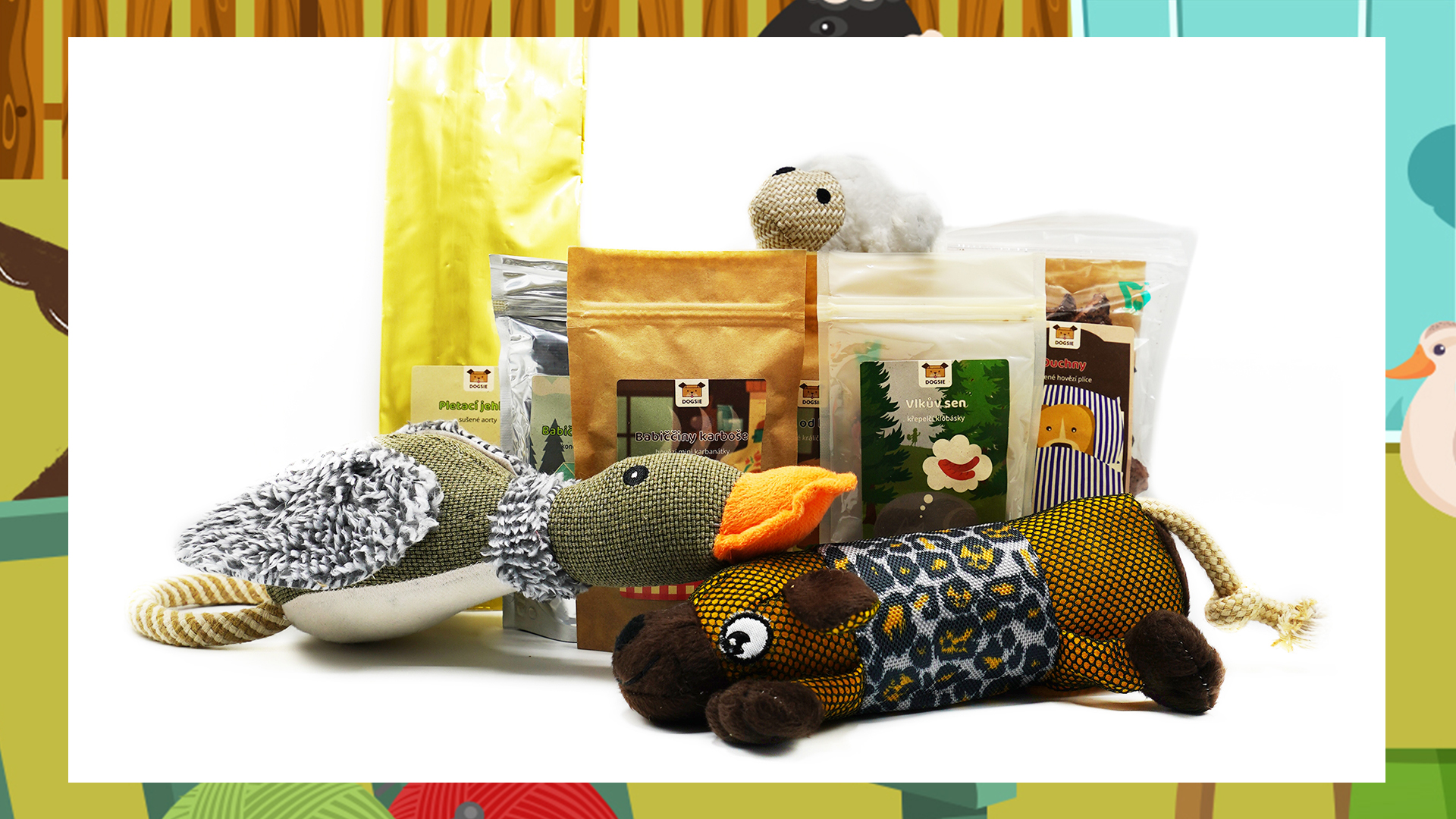 Pro pejsky jsme do Dogsie připravili hračky inspirované lesem. Malí hafani dováděli s šustící lištičkou, která v sobě ukrývá igelit a pískátko, které ještě více láká ke hře. Střední pejsci v balíčku objevili lišku Bystroušku a největší chlupáči si pohráli se zajíčkem ušáčkem.