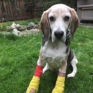 Packy ale hafana naneštěstí trápí dál. Nedávno se Benovi opět výrazně zhoršil stav předních tlapek, začaly hnisat a krvácet. V červnu bylo nutné provést operaci a následná léčba je velmi zdlouhavá a nákladná. Celkem se léčba tlapek zatím vyšplhala na více než 17 000 Kč. Chceme Beníka v léčbě podpořit a zajistit mu tak klidné, důstojné a relativně zdravé stáří.